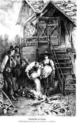 | Keywords: Die Gartenlaube (1876) b 355.jpg Pfingstwäsche im Gebirge Originalzeichnung von Conrad Beckmann in München <br />Bild von Seite 355 der Zeitschrift Die Gartenlaube 1876 Image from page 355 of book Die Gartenlaube 1876 Pentecost in Germany Pentecost traditions |