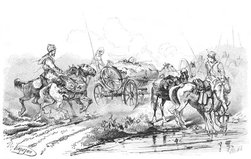 Keywords: Die Gartenlaube (1877) b 495 1.jpg Marschscene hinter einer Kosaken-Colonne an der unteren Donau Skizzen vom Kriegsschauplatze nach der Natur aufgenommen von N Karasin 495 496 Gartenlaube 1887 by Nikolay Karazin