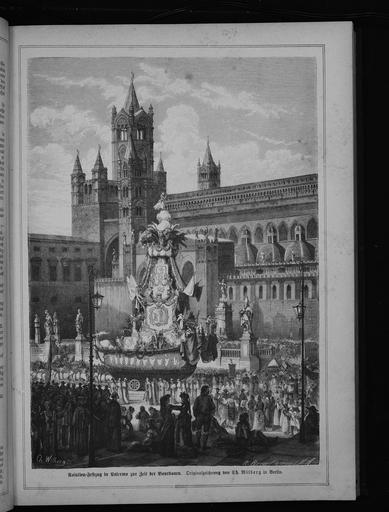 Keywords: Die Gartenlaube (1879) 469.jpg 468 470 Cathedral Palermo in art Side views of the Cathedral of Palermo Christian Wilberg Festino di Santa Rosalia Piazza del Duomo Palermo