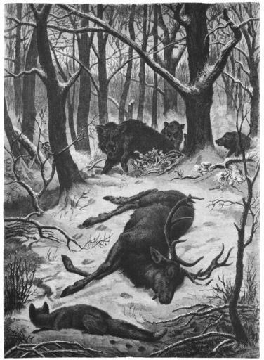Keywords: Die Gartenlaube (1880) b 045.jpg Ein Opfer des Winters Originalzeichnung von G Arnould “ Georg Ludwig Wilhelm Arnould 1843 “1913 045 046 Engravings of animals Boars in art Georg Arnould