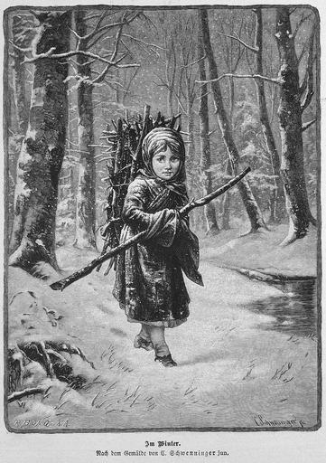 Keywords: Die Gartenlaube (1885) b 019.jpg 019 020 Paintings of winter Drawings of girls Girls looking at viewer in art Carrying in art Transport of firewood