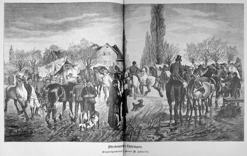 Keywords: Die Gartenlaube (1887) b 308.jpg 308 309 ImageNote 1 1886 2705 958 210 4672 2944 2 Pferdemarkt in Thüringen Originalzeichnung von Hans W Schmidt ImageNoteEnd 1 History of Buttstädt Horses in art