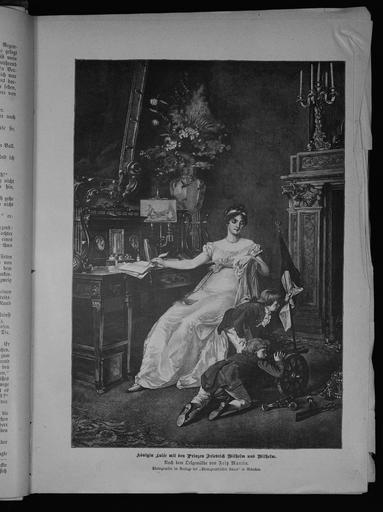 | Keywords: Die Gartenlaube (1889) 025.jpg Königin Luise mit den Prinzen Friedrich Wilhelm und Wilhelm nach dem Ölgemälde von Fritz Martin 024 026 Fritz Martin Louise of Mecklenburg-Strelitz in history paintings Portraits of Friedrich Wilhelm IV of Prussia Wilhelm I of Germany Playing children in art Cannons in painting Mothers and children in art |