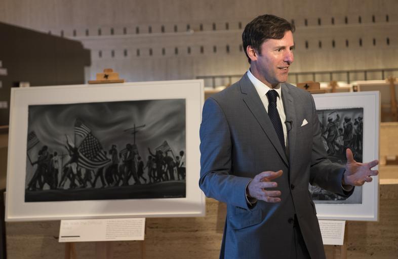 Keywords: austin tx usa LBJ Presidential Library Director Mark Updegrove with the Brian Washington exhibit. On what would have been Dr. Martin Luther King Jr.'s 87th birthday, the LBJ Presidential Library opened two important exhibits related to the civil rights movement. LBJ’s condolence letter to Coretta Scott King is displayed for the first time in a museum. The letter is featured alongside Brian Washington’s inspiring charcoal drawings of The Continual Struggle. LBJ Library photo by Jay Godwin - January 15, 2016 LBJ Presidential Library Director Mark Updegrove with the Brian Washington exhibit. On what would have been Dr. Martin Luther King Jr.'s 87th birthday, the LBJ Presidential Library opened two important exhibits related to the civil rights movement. LBJ’s condolence letter to Coretta Scott King is displayed for the first time in a museum. The letter is featured alongside Brian Washington’s inspiring charcoal drawings of The Continual Struggle. LBJ Library photo by Jay Godwin - January 15, 2016 |