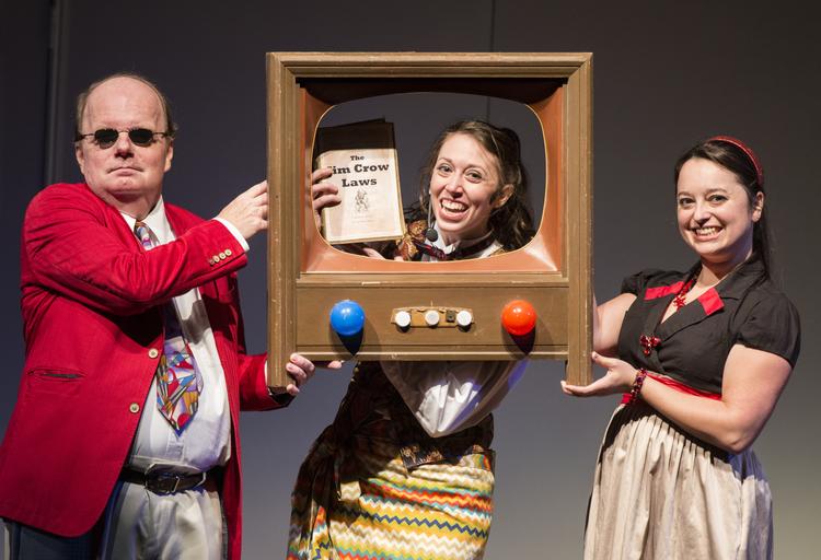 Keywords: lbj library lbjlibrary austin texas lyndon johnson lyndonjohnson president tx usa people indoor Craig Kanne, Jess Hughes and Sara Billeaux. Pollyanna Theatre Company, a resident theatrical company of the Long Center for Performing Arts in Austin, revived its highly successful 2014 inaugural run of the civil rights-focused play, Liberty! Equality! And Fireworks! by Gregory S. Perrin for a performance at the LBJ Presidential Library on Thursday, February 18, 2016. The special production was free, open to the public, and performed in the LBJ Auditorium. Liberty! Equality! And Fireworks! is set in a history museum. The play's characters, a group of 4th grade students (portrayed by adult professional actors), learn about the U.S. civil rights movement when legendary images from the 1960s come to life and talk to the children. These characters entertain and enlighten, taking children on a fascinating journey through history. LBJ Library photo by Jay Godwin 02/18/2016 Craig Kanne, Jess Hughes and Sara Billeaux. Pollyanna Theatre Company, a resident theatrical company of the Long Center for Performing Arts in Austin, revived its highly successful 2014 inaugural run of the civil rights-focused play, Liberty! Equality! And Fireworks! by Gregory S. Perrin for a performance at the LBJ Presidential Library on Thursday, February 18, 2016. The special production was free, open to the public, and performed in the LBJ Auditorium. Liberty! Equality! And Fireworks! is set in a history museum. The play's characters, a group of 4th grade students (portrayed by adult professional actors), learn about the U.S. civil rights movement when legendary images from the 1960s come to life and talk to the children. These characters entertain and enlighten, taking children on a fascinating journey through history. LBJ Library photo by Jay Godwin 02/18/2016 |