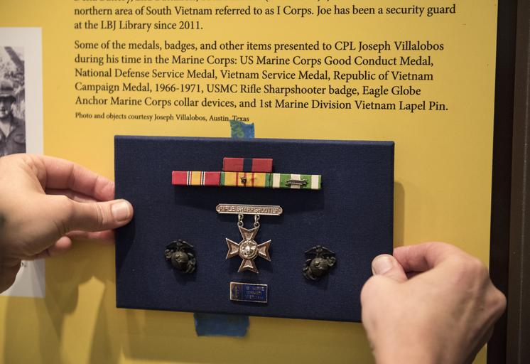 | Keywords: austin tx usa lbj library lbjlibrary Beatrice Smith mounts a collection of medals and badges in the exhibit. Vietnam: Turning Points of the War exhibit in the Great Hall of the LBJ Presidential Library. LBJ Library photo by Jay Godwin 04/11/2016 Beatrice Smith mounts a collection of medals and badges in the exhibit. Vietnam: Turning Points of the War exhibit in the Great Hall of the LBJ Presidential Library. LBJ Library photo by Jay Godwin 04/11/2016 | ||||