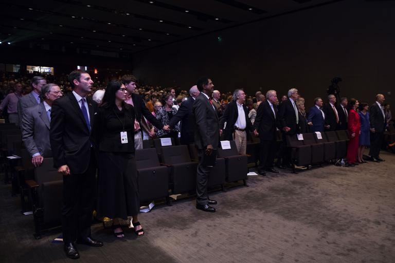 Keywords: winner The audience at the LBJ Presidential Library stands and sings along as folk singer Peter Yarrow, performs "Where Have All The Flowers Gone?" on Thursday, April 28, 2016. The event was part of the library’s three-day Vietnam War Summit. At left is Mark Updegrove, director of the LBJ Library. Yarrow, who used to perform with folk group Peter, Paul and Mary, was part of the huge 1969 moratorium rally in Washington, D.C. against the Vietnam War. He participated in a panel discussion at the LBJ Library with singer/songwriter Country Joe McDonald, a Navy veteran, who wrote one of the most memorable Vietnam War protest songs, "I Feel Like I'm Fixin' to Die Rag," for his band, Country Joe and the Fish. The two discussed how the music of the 1960s and 1970s helped to comfort U.S. troops in Vietnam while fueling the anti-war movement at home. The music discussion was moderated by Bob Santelli, executive director of the GRAMMY Museum. LBJ Library photo by David Hume Kennerly 04/28/2016. The audience at the LBJ Presidential Library stands and sings along as folk singer Peter Yarrow, performs "Where Have All The Flowers Gone?" on Thursday, April 28, 2016. The event was part of the library’s three-day Vietnam War Summit. At left is Mark Updegrove, director of the LBJ Library. Yarrow, who used to perform with folk group Peter, Paul and Mary, was part of the huge 1969 moratorium rally in Washington, D.C. against the Vietnam War. He participated in a panel discussion at the LBJ Library with singer/songwriter Country Joe McDonald, a Navy veteran, who wrote one of the most memorable Vietnam War protest songs, "I Feel Like I'm Fixin' to Die Rag," for his band, Country Joe and the Fish. The two discussed how the music of the 1960s and 1970s helped to comfort U.S. troops in Vietnam while fueling the anti-war movement at home. The music discussion was moderated by Bob Santelli, executive director of the GRAMMY Museum. LBJ Library photo by David Hume Kennerly 04/28/2016. |