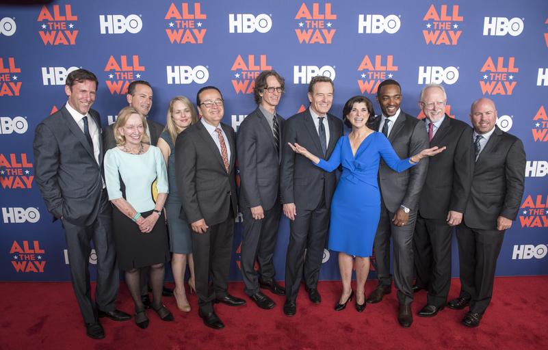 | Keywords: dig13890-080.nef dig13890080nef austin tx usa Mark Updegrove, left, Doris Kearns Goodwin, Darryl Frank, Tara Grace, Len Amato, Jay Roach, Bryan Cranston, Luci Baines Johnson, Anthony Mackie, Robert Schenkkan and Justin Falvey on the red carpet. In conjunction with HBO and the LBJ School of Public Affairs, the LBJ Library held a special preview screening and discussion of the new HBO film "All the Way" starring Bryan Cranston in his Tony Award-winning role as Lyndon Johnson and Anthony Mackie as Martin Luther King, Jr. Following the screening of the film, writer Robert Schenkkan, director Jay Roach, actors Bryan Cranston and Anthony Mackie, and historian and consultant on the film Doris Kearns Goodwin, joined Library Director Mark Updegrove on stage for a discussion. The film will debut on HBO on May 21, 2016. LBJ Library photo by Jay Godwin Mark Updegrove, left, Doris Kearns Goodwin, Darryl Frank, Tara Grace, Len Amato, Jay Roach, Bryan Cranston, Luci Baines Johnson, Anthony Mackie, Robert Schenkkan and Justin Falvey on the red carpet. In conjunction with HBO and the LBJ School of Public Affairs, the LBJ Library held a special preview screening and discussion of the new HBO film "All the Way" starring Bryan Cranston in his Tony Award-winning role as Lyndon Johnson and Anthony Mackie as Martin Luther King, Jr. Following the screening of the film, writer Robert Schenkkan, director Jay Roach, actors Bryan Cranston and Anthony Mackie, and historian and consultant on the film Doris Kearns Goodwin, joined Library Director Mark Updegrove on stage for a discussion. The film will debut on HBO on May 21, 2016. LBJ Library photo by Jay Godwin |