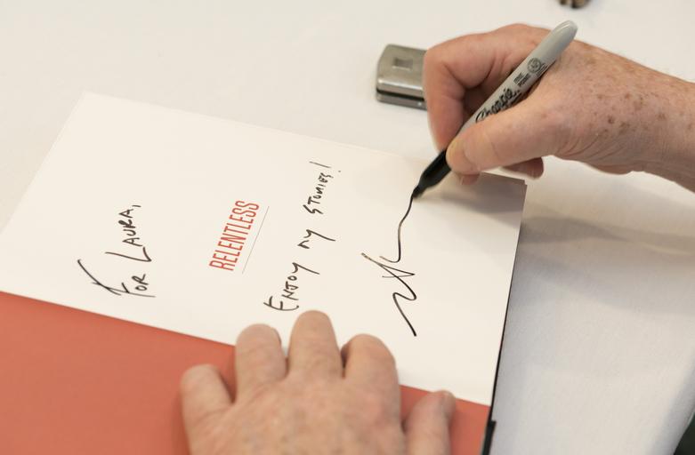 Keywords: dig13943_084.nef dig13943084nef austin tx usa Neil Leifer signing books before the event. On Thursday evening, October 6th, 2016, the LBJ Presidential Library held a special evening with renowned photographer Neil Leifer, who shared a selection of his powerful photos and stories in a conversation with LBJ Library Director Mark Updegrove. Leifer's work has appeared on over 200 Sports Illustrated, Time, and People covers. In 2006, he was honored with the prestigious Lucie Award for Achievement in Sports Photography. His iconic photos of Muhammad Ali – including 35 of his fights – are among the best known of the late boxing legend. In 2014, Leifer was inducted into the International Boxing Hall of Fame, becoming the first photographer to be elected to a professional sports hall of fame. LBJ Library photo by Jay Godwin 10/06/2016 Neil Leifer signing books before the event. On Thursday evening, October 6th, 2016, the LBJ Presidential Library held a special evening with renowned photographer Neil Leifer, who shared a selection of his powerful photos and stories in a conversation with LBJ Library Director Mark Updegrove. Leifer's work has appeared on over 200 Sports Illustrated, Time, and People covers. In 2006, he was honored with the prestigious Lucie Award for Achievement in Sports Photography. His iconic photos of Muhammad Ali – including 35 of his fights – are among the best known of the late boxing legend. In 2014, Leifer was inducted into the International Boxing Hall of Fame, becoming the first photographer to be elected to a professional sports hall of fame. LBJ Library photo by Jay Godwin 10/06/2016 |