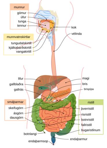 | Keywords: Digestive system diagram is.svg The gastrointestinal tract also called the digestive tract alimentary canal or gut is the system of organs within multicellular animals that takes in food digests it to extract energy and nutrients and expels the remaining waste Own 2007-10-03 translated User Akigka / LadyofHats LadyofHats Other versions/Digestive system diagram translation possible SVG human digestive system Diagrams in Icelandic | ||||