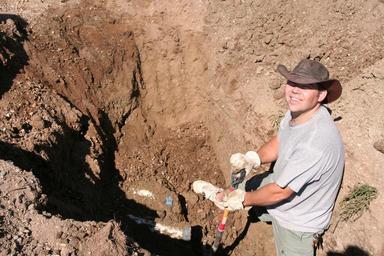 Keywords: digging smile man person dig spade work dirt ground worker people male hat shovel