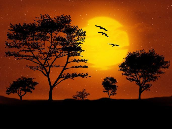 Keywords: digital art landscape trees artwork moon moonlight nature art bright artistic bird