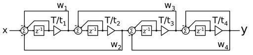 Keywords: Digital leapfrog filter order 4.svg en 4th order digital leapfrog filter own Fcorthay Cc-zero Electronic filters Filter circuits