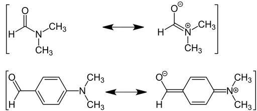 Keywords: Dimethyl Formamide Vinylogy Mesomerism.svg en Dimethyl_Formamide_Vinylogy_Mesomerism own Jü 2010-04-10 Dimethylformamide Aminobenzaldehydes Mesomerism