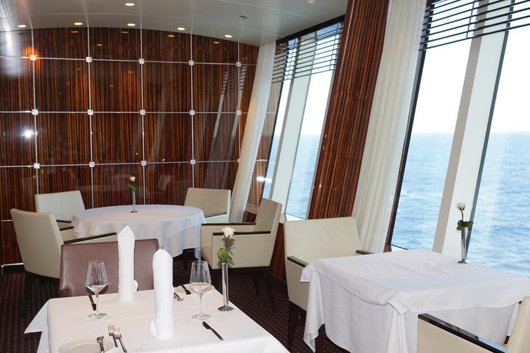 Keywords: dining tables restaurant eat gastronomy aida ship travel sea window white tablecloth cloth decoration festival meal caribbean wood modern