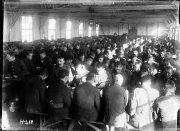 Keywords: blackandwhite monochrome auditorium people crowd black and white Soldiers sitting down to dinner at the New Zealand Infantry Base Depot in Etaples, France, during World War I. Photograph taken 13 Jan 1918 by Henry Armytage Sanders. Inscriptions: Inscribed - Photographer's title on negative -bottom left: H418. Quantity: 1 b&w original negative(s). Physical Description: Dry plate glass negative 4.75 x 6.5 inches Dining time at the New Zealand Base Depot in France. Royal New Zealand Returned and Services' Association :New Zealand official negatives, World War 1914-1918. Ref: 1/2-013045-G. Alexander Turnbull Library, Wellington, New Zealand. natlib.govt.nz/records/23155004 Soldiers sitting down to dinner at the New Zealand Infantry Base Depot in Etaples, France, during World War I. Photograph taken 13 Jan 1918 by Henry Armytage Sanders. Inscriptions: Inscribed - Photographer's title on negative -bottom left: H418. Quantity: 1 b&w original negative(s). Physical Description: Dry plate glass negative 4.75 x 6.5 inches Dining time at the New Zealand Base Depot in France. Royal New Zealand Returned and Services' Association :New Zealand official negatives, World War 1914-1918. Ref: 1/2-013045-G. Alexander Turnbull Library, Wellington, New Zealand. natlib.govt.nz/records/23155004 |