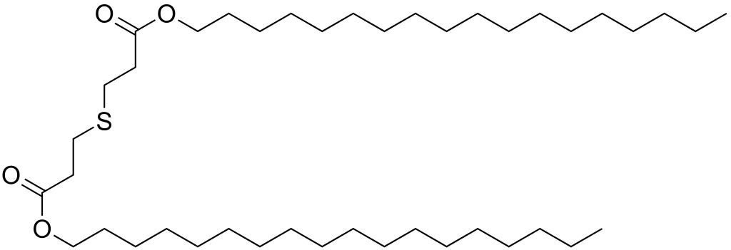 | Keywords: Dioctadecyl 3,3'-thiodipropanoate 100.svg validSVG Structure of dioctadecyl 3 3'-thiodipropanoate Own 2014-03-25 Emeldir <span class signature-talk >talk</span> Chemical structure verified https //upload wikimedia org/wikipedia/commons/5/5f/Dioctadecyl_3 2C3 27-thiodipropanoate_100 svg 1S/C42H82O4S/c1-3-5-7-9-11-13-15-17-19-21-23-25-27-29-31-33-37-45-41 43 35-39-47-40-36-42 44 46-38-34-32-30-28-26-24-22-20-18-16-14-12-10-8-6-4-2/h3-40H2 1-2H3 PWWSSIYVTQUJQQ-UHFFFAOYSA-N 693-36-7 PD-chem Aging inhibitors Thioethers Esters |
