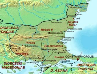 | Keywords: Dioecesis Thraciae 400 AD.png Map of the Diocese of Thrace Dioecesis Thraciae ca 400 AD showing the subordinate provinces and the major cities Base map found at en Topographic map Global 1-kilometer map otherwise self-made Data based on maps in atlases and the internet and on contemporary sources primarily the Notitia Dignitatum <br>Note The exact course of the provincial boundaries is very uncertain and in many cases only approximate 2007-10-02 Cplakidas Maps of Roman provinces Maps of Byzantine provinces Maps of the history of Bulgaria in ancient times Maps of ancient Thrace Maps of the history of Romania in ancient times Maps of Dacia 400s Tomis Histria ancient city Romania in the 3rd century 400 in Romania Roman Thrace |