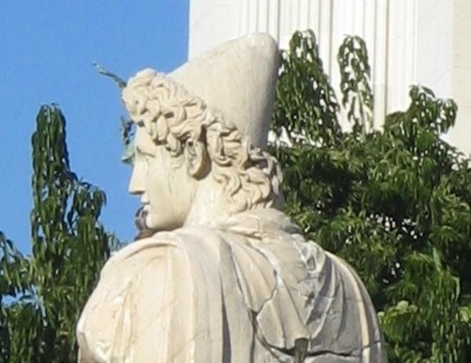 Keywords: Dioscuro cordonata2.jpg Colossal statue of a Dioscure piazza del Campidoglio in Rome Late Roman artwork 4th century CE Statue colossale de Dioscure balustrade de la place du Capitole à Rome Œuvre romaine tardive du IVe siècle ap J -C Vista laterale di uno dei due Dioscuri del Campidoglio Roma opera romana del sec IV d C Si trova sulla balaustra di accesso a Piazza del Campidoglio a Roma 2006-01-07 own assumed Carlomorino Capitoline Dioscuri Rome Pileus |