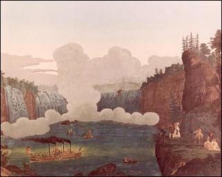 Keywords: DiplomaticNiagra.jpg Zuber et Cie woodblock printed wallpaper Views of North America as installed in the White House Diplomatic Reception Room Details showing Niagra Falls White House photo from the whitehouse gov PD-USGov Diplomatic Reception Room Niagara Falls in art Paintings in the White House Zuber et Cie wallpapers |