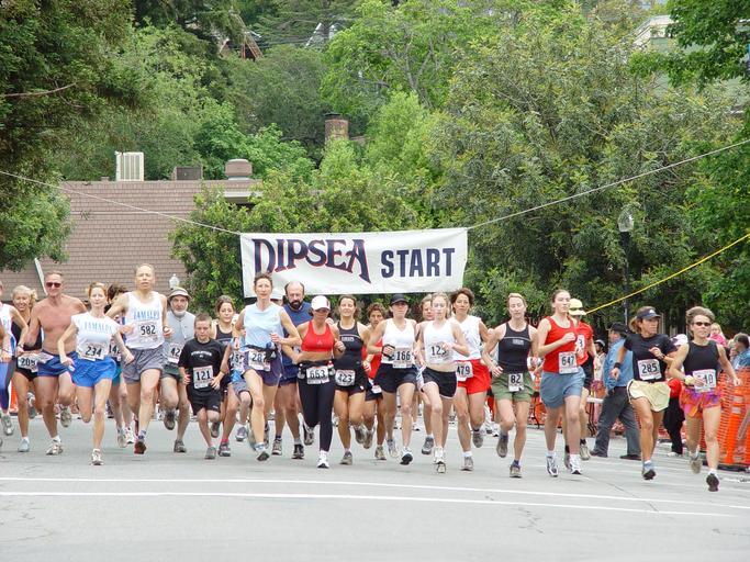 Keywords: Dipsea Race start 2003.jpg en One group leaving the starting line in the 2003 Dipsea Race an annual foot race in Mill Valley and Mount Tamalpais in Northern California own Bento00 2003-06-08 Dipsea Race