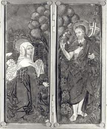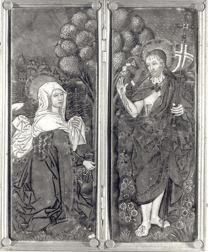 Keywords: Diptych Noli me tangere.jpg Diptych Noli me tangere Christ after Resurrection and St Mary Magdalene Dyptyk Noli me tangere Chrystus Zmartwychwstały i św Maria Magdalena Enamel copper cm 7 5 21 Object history Catalogue of stolen and missing cultural achievements / comp Jan Świeczyński; Ośrodek Informacyjno-Koordynacyjny Ochrony Obiektów Muzealnych Warsaw 1988 Editor Wojciech Jaskulski Piotr Ogrodzki See also http //kolekcje mkidn gov pl/katalog/podglad ID 11445 Department of National Heritage Wartime losses an official webpage of Polish Ministry of Culture Art and National Heritage century 15 Nardon Pénicaud Limoges Other versions Photo Photo Polish Ministry of Culture Art and National Heritage author < 1939 PD-Polish Anonymous-EU Metalwork lost in Poland during World War II Noli me tangere Limoges enamel - 15th century |