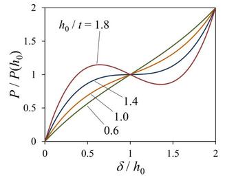 | Keywords: Disc spring load-deflection characteristic curve.svg ja 皿ばねの荷重・たわみ特 曲線 アルメン・ラスロの式より計算 h<sub>0</sub> は自由高さ t は自由高さ はたわみ P は荷重 P h<sub>0</sub> は h<sub>0</sub> における荷重 アルメン・ラスロの式より P と の関係は <math>P \frac 4E 1-\nu 2 \frac t 3 C_1 d_e 2 \delta \left \left \beta-\frac \delta t \right \left \beta-\frac \delta 2t \right +1 \right</math> 曲線 成に直接使用したのは P を P h<sub>0</sub> で除して得られる <math>y x \beta 2 1-x 1-x/2 +1 </math> で ここで y P/P h<sub>0</sub> x /h<sub>0</sub> h<sub>0</sub>/t 2016-08-13 own Yapparina other versions cc-zero Disc springs Spring characteristics |