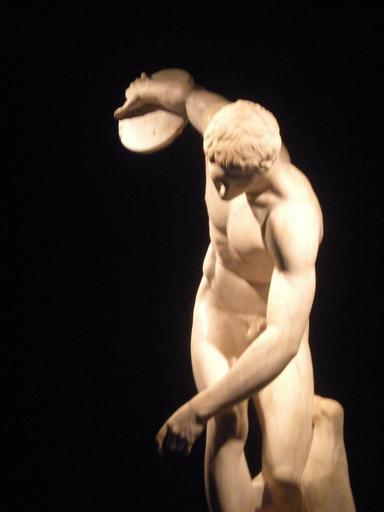 | Keywords: Discobolo 16.jpg Discobolus Marble Roman copy after a bronze original of the 5th century BC From the Villa Adriana near Tivoli Italy Estatua de mármol Copia romana del siglo II de un original de bronce circa 450-440 a C atribuido a Mirón Proveniente de la villa del emperador romano Adriano cerca de Tívoli Italia Discobole Marbre copie romaine d'après un original en bronze du Ve siècle av J -C attribué à Myron Provenance Villa Adriana près de Tivoli Discobolo Marmo copia romana da un originale in bronzo del V sec a C da Mirone Da Villa Adriana presso Tivoli H 1 69 m 5 ft 6 ¾ in W 1 05 m Museum British Museum Main staircase This photo's taken in the Museo Arqueológico de Alicante Temporal exhibition object history credit line Former Townley Collection accession number GR 1805 7-3 43 Cat Sculpture 250 Dorieo other versions own Dorieo 2009-04-16 Discobolo en el MARQ |