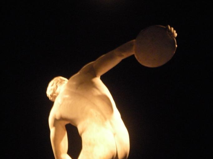 | Keywords: Discobolo 9.jpg Discobolus Marble Roman copy after a bronze original of the 5th century BC From the Villa Adriana near Tivoli Italy Estatua de mármol Copia romana del siglo II de un original de bronce circa 450-440 a C atribuido a Mirón Proveniente de la villa del emperador romano Adriano cerca de Tívoli Italia Discobole Marbre copie romaine d'après un original en bronze du Ve siècle av J -C attribué à Myron Provenance Villa Adriana près de Tivoli Discobolo Marmo copia romana da un originale in bronzo del V sec a C da Mirone Da Villa Adriana presso Tivoli H 1 69 m 5 ft 6 ¾ in W 1 05 m Museum British Museum Main staircase This photo's taken in the Museo Arqueológico de Alicante Temporal exhibition object history credit line Former Townley Collection accession number GR 1805 7-3 43 Cat Sculpture 250 Dorieo other versions own Dorieo 2009-04-16 Discobolo en el MARQ |