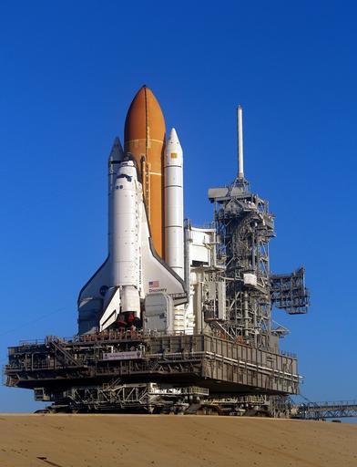 Keywords: discovery space shuttle rollout launch pad pre-launch astronaut mission exploration spaceship rocket flight