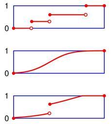 | Keywords: Discrete probability distribution illustration.png 2px 3 valign center There are SVG versions 392px Discrete distribution - 392px Normal distribution - 392px Mixed distribution From top to bottom the cumulative distribution function of a discrete probability distribution continuous probability distribution and a distribution which has both a continuous part and a discrete part Cumulative distribution functions are examples of càdlàg functions Fonctions de répartition d'une variable discrète d'une variable diffuse et d'une variable avec atome mais non discrète בשרטוט הע יון מוצגת פונקציית ההצטברות ש ההתפ גות הבדידה ש ה ש ושה ערכי אפשריי 1 3 ו- 7 בהסתברות 0 2 0 5 ו-0 3 בהתאמה השרטוט האמצעי מציג את פונקציית ההצטברות ש התפ גות רציפה עובדה שניתן הסיק בש רציפות הפונקציה ע כ הטווח 0 1 השרטוט התחתון מציג פונקציית הצטברות ש התפ גות שהינה רציפה בח קה ובדידה בח קה Az eloszlásfüggvények például càdlàg függvények Le funzioni di ripartizione sono un esempio di funzioni càdlàg 上から順に 離散確率分布 続確率分布 続部分と離散部分がある確率分布の累積分布関数 산 확률 분포 연속 확률 분포 산적 분과 연속적 분 모두 존재하는 분포에 각각 누적 분포 함수 Od góry dystrybuanta pewnego dyskretnego rozkładu rozkładu ciagłego oraz rozkładu mającego zarówno ciągłą jak i dyskretną część Одозго на доле функција асподеле диск етне случајне п оменљиве неп екидне случајне п оменљиве и случајне п оменљиве која има и неп екидне и диск етне делове From top to bottom the cumulative distribution function of a discrete probability distribution continuous probability distribution and a distribution which has both a continuous part and a discrete part Yukarıdan aşağıya doğru bir ayrık olasılık dağılımı için bir sürekli olasılık dağılımı için ve hem sürekli hem de ayrık kısımları bulunan bir olasılık dağılımı için yığmalı olasılık fonksiyonu sten alta doğru Bir aralıklı dağılım için bir sürekli dağılım için ve hem sürekli bir kısmı hem de aralıklı bir kısmı bulunan bir dağılım için yığmalı dağılım fonksiyonları Зве ху вниз функція озподілу для диск етного озподілу ймові ностей для непе е вного озподілу та для озподілу що містить диск етну та непе е вну частини Từ trên xuống dưới hàm phân phối tích tũy của một phân phối xác suất r i rạc phân phối xác suất liên tục và một phân phối có cả một phần liên tục và một phần r i rạc Hàm phân bố tích lũy là một ví dụ của hàm số càdlàg own Oleg Alexandrov other versions see above and below Created with MATLAB Discrete_probability_distribution_illustration svg Source code MATLAB <source lang Matlab > plot a the cummulative distribution function for a a discrete distribution b continuous distribtuion c a distribution which has both a discrete and a continuous part function main clf; hold on; axis equal; axis off; L 4; h 0 02; X 0 h L; shift 2; Y 0 find X < 0 2 L 0 3+0 find X > 0 2 L X < 0 4 L 0 6+0 find X > 0 4 L X < 0 8 L 1+0 find X> 0 8 L ; plot_graph X Y L 0 shift Y 0 5 erf 4/L X-L/2 5 +0 5; plot_graph X Y L shift ; ds 0 4; Y 0 5 erf 2/L X-L/1 5 +0 5; Y Y + 0 find X < ds L 0 4+0 find X > ds L ; Y min Y 1 ; plot_graph X Y L 2 shift ; plot two dummy points to make matlab expand a bit the window before saving plot L+0 15 1 1 ' ' 'color' 0 99 1 1 1 ; plot -0 5 -2 1 shift ' ' 'color' 0 99 1 1 1 ; save as eps saveas gcf 'Discrete_probability_distribution_illustration eps' 'psc2' function plot_graph X Y L shift settings N length X ; tol 0 1; thick_line 3; thin_line 2; small_rad 0 07; red 1 0 0; blue 0 0 1; fs 23; epsilon 0 01; plot a blue box plot 0 L L 0 0 0 0 1 1 0-shift 'linewidth' thin_line 'color' blue everything will be shifted down Y Y - shift; if the given funtion has a jump plot some balls Otherwise plot a continous segment for i 1 N-1 if abs Y i -Y i+1 > tol ball X i+1 Y i+1 small_rad red ; empty_ball X i Y i thin_line 0 9 small_rad red ; else plot X i -epsilon X i+1 +epsilon Y i Y i+1 'color' red 'linewidth' thick_line ; end end ball 0 -shift small_rad red ; ball L 1-shift small_rad red ; plot text small 0 4; text -small 0-shift '0' 'fontsize' fs text -small 1-shift '1' 'fontsize' fs function ball x y r color Theta 0 0 1 2 pi; X r cos Theta +x; Y r sin Theta +y; H fill X Y color ; set H 'EdgeColor' 'none' ; function empty_ball x y thick_line r color Theta 0 0 1 2 pi; X r cos Theta +x; Y r sin Theta +y; H fill X Y 1 1 1 ; plot X Y 'color' color 'linewidth' thick_line ; </source> Discrete probability theory Files by User Oleg Alexandrov from en wikipedia Images with Matlab source code Cumulative distribution functions |