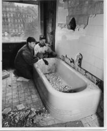 | Keywords: u.s. national archives usnationalarchives harry s. truman library harrystrumanlibrary nara:arcid=6982081 blackandwhite monochrome people black and white Original Caption: Dismantling a Bathtub in the White House, 02/10/1950 Created By: National Archives and Records Administration. Office of Presidential Libraries. Harry S. Truman Library. (04/01/1985 - ) From: Series: Photographs Relating to the Administration, Family, and Personal Life of Harry S. Truman, compiled 1957 - 2004, documenting the period 1849 - 2004 Contact: Harry S. Truman Library (NLHST), 500 West U.S. Highway 24, Independence, MO, 64050-1798. PHONE: 816-268-8272; FAX: 816-268-8295; EMAIL:truman.reference@nara.gov. Production Dates: 02/10/1950 Scope and Content Note: Two unidentified workmen are dismantling the bathtub in room B-17, in the northwest corner of the second floor of the White House during the renovation. Persistent URL: arcweb.archives.gov/arc/action/ExternalIdSearch?id=6982081 Truman Library URL: www.trumanlibrary.org/photographs/view.php?id=1893 Access Restrictions: Unrestricted Use Restrictions: Unrestricted Original Caption: Dismantling a Bathtub in the White House, 02/10/1950 Created By: National Archives and Records Administration. Office of Presidential Libraries. Harry S. Truman Library. (04/01/1985 - ) From: Series: Photographs Relating to the Administration, Family, and Personal Life of Harry S. Truman, compiled 1957 - 2004, documenting the period 1849 - 2004 Contact: Harry S. Truman Library (NLHST), 500 West U.S. Highway 24, Independence, MO, 64050-1798. PHONE: 816-268-8272; FAX: 816-268-8295; EMAIL:truman.reference@nara.gov. Production Dates: 02/10/1950 Scope and Content Note: Two unidentified workmen are dismantling the bathtub in room B-17, in the northwest corner of the second floor of the White House during the renovation. Persistent URL: arcweb.archives.gov/arc/action/ExternalIdSearch?id=6982081 Truman Library URL: www.trumanlibrary.org/photographs/view.php?id=1893 Access Restrictions: Unrestricted Use Restrictions: Unrestricted |