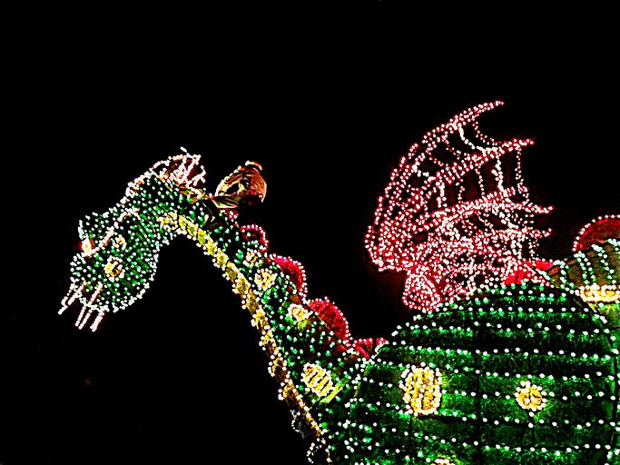 Keywords: disney world petes dragon light parade vacation colorful dragon lights parade night festival holidays green lights