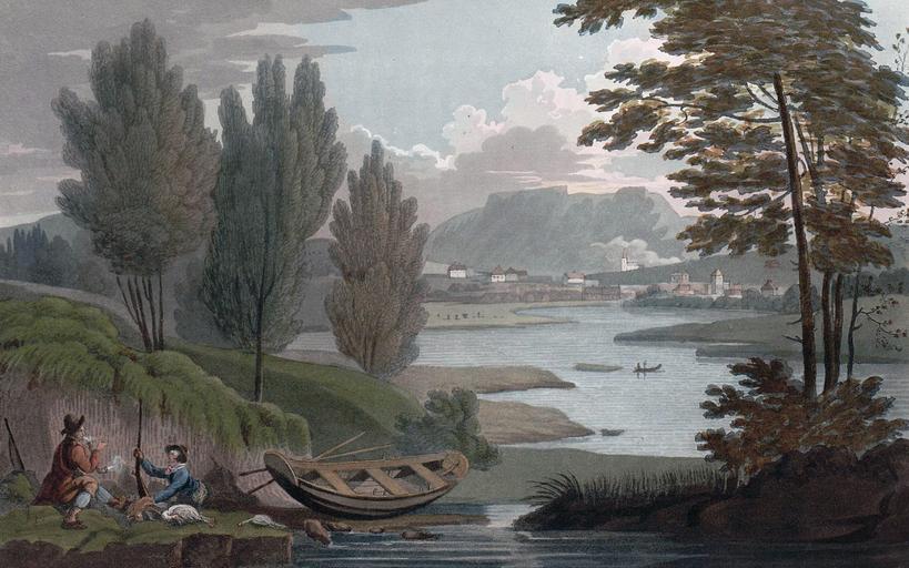 | Keywords: Distant View of Skeen (JW Edy plate 37).jpg Artwork Creator John William Edy en Distant View of Skeen named prams in general use throughout Norway; at this town they are construeted very slight with few ground timbers and no saxboards ; the head is considerably higher and projects more out of the water than that of the pram made at other places The hunters with their rifle guns and game are seen reposing and regaling themselves with the mersham pipe under a stratified piece of rock on the bank of a stream which drives the saw and flour mills in the town The huntsmen set out early in the morning into the woods and there sit down with almost inconceivable patience sheltered by a bush to wait for the game No better marksmen can be found; with a rifle ball they invariably hit their game in the eye or head thus preserving the skins entire Few persons are able to endure cold hunger fatigue or adversity in any shape with a degree of magnanimity and composure equal to that which is familiar to the natives of Norway After being out a whole day on a hunt exposed to the bleakest winds and most penetrating cold and that without the least thing to satisfy the calls of nature the hunter comes home warms himself takes a glass of brandy if he has it a bit of brown unleavened bread smokes his pipe of tobacco and then retires to rest as calm as if in the midst of plenty Collapse bottom http //urn nb no/URN NBN no-nb_digibok_2011072910001 Boydell's picturesque scenery of Norway London 1820 Plate no 37 p 217 in scanned copy no-nb_digibok_2011072910001 PD-Art-100 John William Edy Boydell's picturesque scenery of Norway Historical images of Skien Geography of Telemark Hunting in Norway Telemark in art |