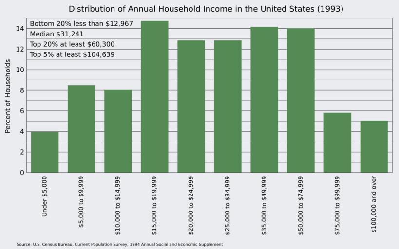 | Keywords: Distribution of Annual Household Income in the United States 1993.svg en Distribution of Annual Household Income in the United States in 1993 Based on US Census/Bureau of Labor Statistics data from the https //www census gov/hhes/www/income/data/incpovhlth/1993/index html Income and Poverty Statistics 1993 2016-03-14 own Delphi234 other versions cc-zero Income distribution in the United States | ||||