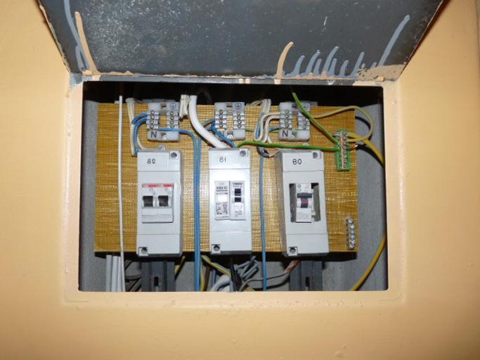 | Keywords: Distribution board in USSR apartment building after modernisation.JPG en Distribution board in USSR apartment building after modernisation Flat 81 got copper cable cause of increased power consuption So as power consumption depend on current voltage is constant it is need to put cable that pass increased current without heating ru Элект ический щит в ква ти ном доме советской пост ойки Из-за повышения мощности в ква ти у 81 установлен медный кабель Поскольку мощность зависит от силы тока нап яжение подаётся одно и то же необходим монтаж кабеля способного без пе ег ева выде жать п отекающий ток own Dmitry G 2009-09-24 thumb center Distribution boards |