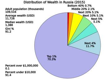 | Keywords: Distribution of Wealth in Russia.svg translate yes en Wealth shares of different percentile groups in Russia in 2015 Data from Credit Suisse http //publications credit-suisse com/tasks/render/file/index cfm fileid C26E3824-E868-56E0-CCA04D4BB9B9ADD5 Table 6-5 Page 149 2016-07-20 own Delphi234 other versions cc-zero Distribution of wealth Economic inequality SVG pie charts | ||||