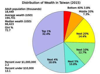 | Keywords: Distribution of Wealth in Taiwan.svg translate yes en Wealth shares of different percentile groups in Taiwan in 2015 Data from Credit Suisse http //publications credit-suisse com/tasks/render/file/index cfm fileid C26E3824-E868-56E0-CCA04D4BB9B9ADD5 Table 6-5 Page 149 2016-07-20 own Delphi234 other versions cc-zero Distribution of wealth Economic inequality SVG pie charts | ||||