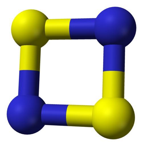 | Keywords: Disulfur-dinitride-3D-balls.png Ball-and-stick model of the disulfur dinitride molecule S<sub>2</sub>N<sub>2</sub> Structural information from cite journal J Am Chem Soc 118 27 1996 June 6472-6476 10 1021/ja953994f The Extraordinary Electronic Structure of N<sub>2</sub>S<sub>2</sub> J Gerratt S J McNicholas P B Karadakov M Sironi M Raimondi D L Cooper Image generated in http //accelrys com/products/discovery-studio/visualization/discovery-studio-visualizer html Accelrys DS Visualizer Own 2008-11-15 Ben Mills Benjah-bmm27 Images by Ben Mills Disulfur dinitride |
