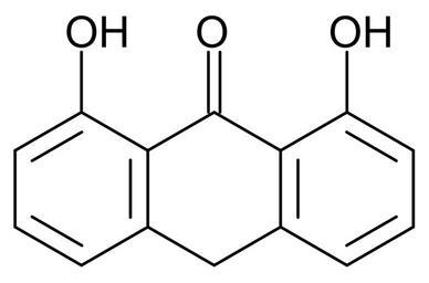 Keywords: Dithranol structure.svg Chemical structure of dithranol Self-made in BKChem scaled in perl 2007-08-25 User Mysid Polyphenols Dermatological drugs Anthrones