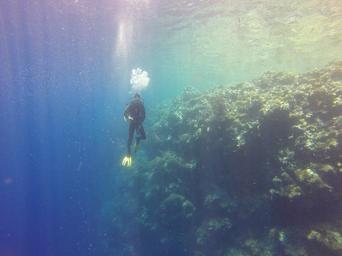 Keywords: diver palau drop-off ocean tropical deep diving nature coral reef scuba sea underwater blue activity fins pacific