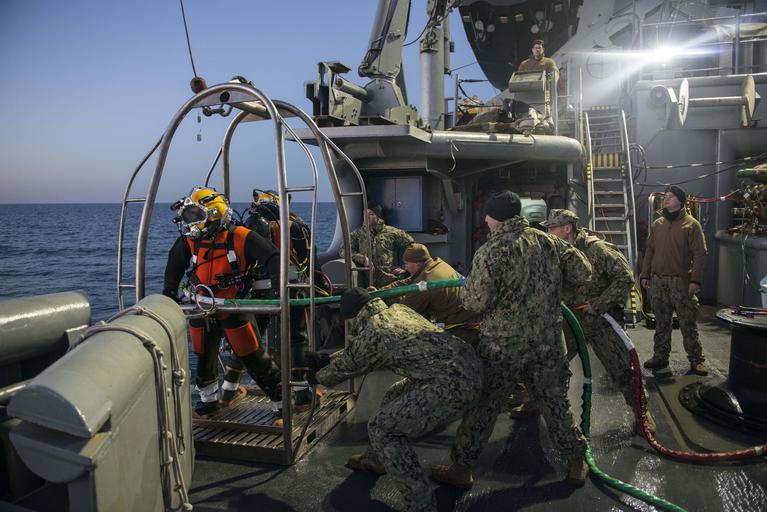 | Keywords: Divers search for a lost air crewman (11894226455).jpg ATLANTIC OCEAN Jan 9 2014 Navy divers assigned to Mobile Diving and Salvage Unit MDSU 2 Company 2-2 are lowered into the water Thursday Jan 9 2014 from the Military Sealift Command rescue and salvage ship USNS Grasp T-ARS-51 MDSU-2 is aboard Grasp searching for the missing crew member of an MH 53E Sea Dragon helicopter that went down Jan 8 2014 off the coast of Virginia U S Navy photo by Mass Communication Specialist 3rd Class Wyatt Huggett/Released 140109-N-BJ254-016 Join the conversation http //www navy mil/viewGallery asp www navy mil/viewGallery asp http //www facebook com/USNavy www facebook com/USNavy http //www twitter com/USNavy www twitter com/USNavy http //navylive dodlive mil navylive dodlive mil http //pinterest com pinterest com https //plus google com plus google com http //www flickr com/photos/usnavy/11894226455/ Divers search for a lost air crewman 2012-09-26 19 59 http //www flickr com/people/56594044 N06 Official U S Navy Page from United States of America MC3 Wyatt Huggett/U S Navy Attribution License IPTC Caption-Abstract U S Navy photo PD-USGov-Military-Navy Official U S Navy Imagery http //flickr com/photos/56594044 N06/11894226455 2014-04-03 12 50 28 cc-by-2 0 Salvage Files uploaded by Russavia Files uploaded by Russavia |