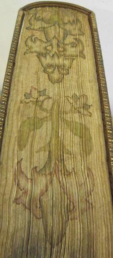 Keywords: Divi Dionysii Carthusiani in Sententiarum Librum I.(-IV.) commentarii locupletissimi. -With the text.- (D. Dionysii Carthusiani vitæ gesta ac sanctimonia -by T. Loer-. Index ac elucidatio di - Tail edge (low resolution) (C48h3).jpg Style Armorial Centre and cornerpiece; Caption Tail edge low resolution ; Colour Brown; Edge Painted exhibition history Decorative Technique Tooled in blind Tooled in gold; Cover Material Calf Stuart coat of arms with label of difference indicating Prince of Wales provenance object history Text 1584; Venice; Stuart coat of arms object type Cc-zero place of creation Binding England place of discovery Unspecified British Library image http //www bl uk/catalogues/bookbindings/LargeImage aspx RecordId 020-000019360 ImageId ImageId 57668 Copyright BL Divi Dionysii Carthusiani in Sententiarum Librum I -IV commentarii locupletissimi With the text D Dionysii Carthusiani vitæ gesta ac sanctimonia by T Loer Index ac elucidatio dictionum ac dictorum quorundam magis difficilium in Theologia collectus ex opere P Armandi Venetiis 1584 Uploaded with GWToolset Divi Dionysii Carthusiani in Sententiarum Librum I -IV commentarii locupletissimi With the text D Dionysii Carthusiani vitæ gesta ac sanctimonia by T Loer Index ac elucidatio di - Tail edge low resolution C48h3 http //www webarchive org uk/bldatasets/bindings/c48h3tail jpg Bookbinding 17th-century bookbinding British Library Bookbindings