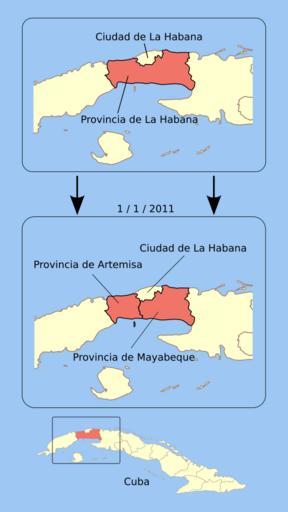 | Keywords: Division de La Habana.svg Map diagramming the division of the La Habana province in Cuba into Mayabeque province and Artemisa province including a note on the separate city of Havana whose suburbs this area contains Note This map was drawn with the understanding that La Habana was simply being divided but it's been pointed out that this is incorrect the western border of Artemisa is moving further west than the western border of La Habana and will in fact capture several counties from Pinar Del Rio province This is awaiting correction I Lesqual talk created this work entirely by myself from public domain sources including http //www naturalearthdata com/ NED and Image Mayabeq_mapa jpg 17 20 22 August 2010 UTC Lesqual talk en Lesqual Original upload log en wikipedia Dantadd page en wikipedia Division_de_La_Habana_es svg 2010-09-02 03 16 Lesqual 519×923× 202533 bytes <nowiki>Font -> DejaVu Sans textareas regrouped at base level</nowiki> 2010-09-02 03 10 Lesqual 519×923× 201107 bytes <nowiki>Standard SVG rather than Inkscape SVG perhaps </nowiki> 2010-09-01 19 21 Lesqual 519×923× 216026 bytes <nowiki>Reverted to version as of 17 32 22 August 2010 Guess not </nowiki> 2010-09-01 19 19 Lesqual 519×923× 103943 bytes <nowiki>Testing whether Illustrator has better SVG compatability with RSVG than Inkscape</nowiki> 2010-08-22 17 32 Lesqual 519×923× 216026 bytes <nowiki> Summary Map diagramming the division of the La Habana province in Cuba into Mayabeque province and Artemisa province including a note on the separate city of Havana whose suburbs this area contains Source </nowiki> Province of Havana Locator maps of provinces of Cuba |