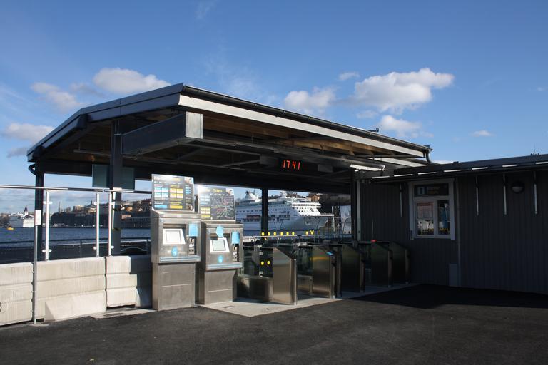 Keywords: Djurgårdsfärjan nya slussen 2016.JPG sv Nya kajen för Slussen för Djurgårdsfärjan 2016 2016-04-26 16 49 48 own AleWi other versions cc-zero Djurgårdsfärjan Docks in Sweden