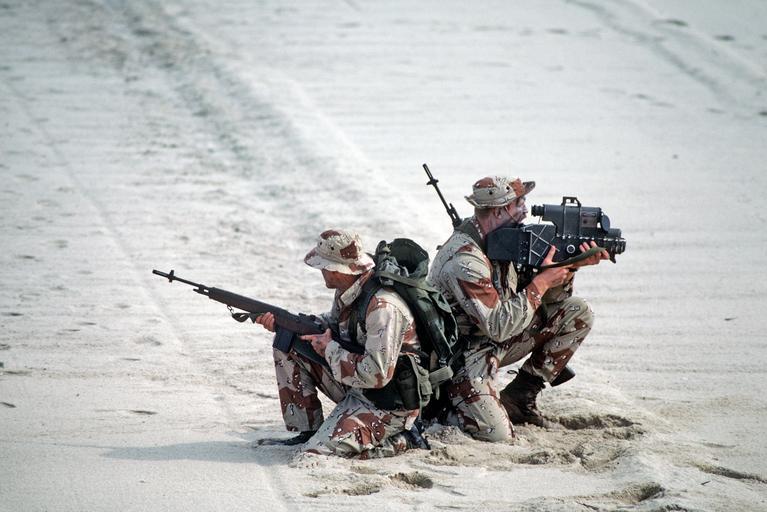 Keywords: nab, little creek nablittlecreek virginia (va) virginiava united states of america (usa) unitedstatesofamericausa outdoor people Sea-Air-Land (SEAL) team members, one equipped with an AN/PAQ-1 laser target designator, right, the other armed with an M14 rifle, assume a defensive position after assaulting the beach during an amphibious demonstration for the 14th Annual Inter-American Naval Conference. Sea-Air-Land (SEAL) team members, one equipped with an AN/PAQ-1 laser target designator, right, the other armed with an M14 rifle, assume a defensive position after assaulting the beach during an amphibious demonstration for the 14th Annual Inter-American Naval Conference. |