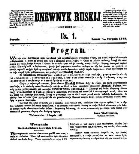 | Keywords: Dnewnyk Ruskij.jpg en Newspaper «Dnewnyk Ruskij» ru Газета «Dnewnyk Ruskij» http //www anthropos org ua/jspui/handle/123456789/886 Ту ій О аціональне і політичне полонофільство се ед г еко-католицького духовенства Галичини під час еволюції 1848 1849 оків 1848 PD-old Newspapers of Austria 1848 newspapers History of Lviv Newspapers in Ukrainian Newspaper front pages |