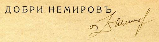 Keywords: Dobri Nemirov signature.jpg en Dobri Nemirov signature bg Автог аф от книгата му И вечна да е Из акедония а уважаемата госпожа Лидия п оф Шишманова Автог аф от книгата му И вечна да е Из акедония Creator Dobri Nemirov 1929-09-30 PD-old Dobri Nemirov Signatures of people from Bulgaria Signatures of writers from Bulgaria