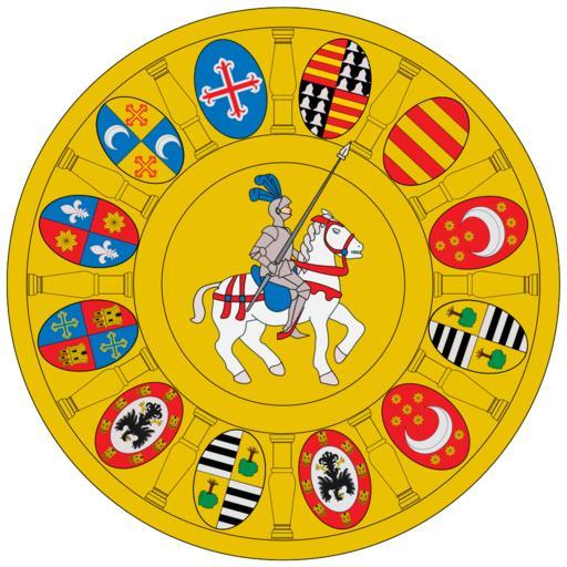| Keywords: Docelinajesdesoria.svg es La Rueda de los Doce Linajes representa a los escudos de las doce casas nobiliarias de la ciudad de Soria rodeando una figura ecuestre a la que algunos autores identifican con Alfonso VIII Se representan en circulo porque no había prioridad ni posterioridad ni diferencia ninguna entre ellos Las doce casas son empezando por la parte superior Don Vela Calatañazor Salvadores Honderos y Someros Morales Blancos y Negros Chancilleres Honderos y Someros Barnuevo San Llorente Santisteban y Santa Cruz own Dgarcia29 2009-05-17 History of Soria Round Table |