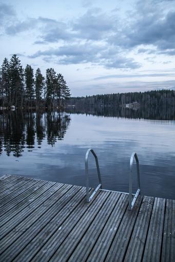Keywords: dock ladders lake finland dark evening water nature blue sky landscape peaceful reflection calm travel vacation outdoors wood wooden dock wooden horizon scenic tourism steps